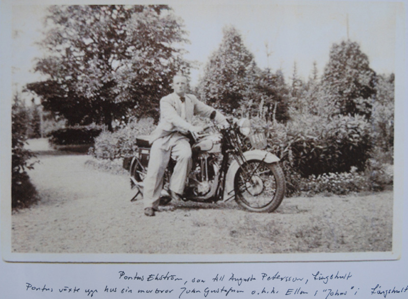 Pontus Ekström, son till Augusta Petersson, Långshult. Pontus växte upp hos sin morbror John Gustafsson o.h.h Ellen i "Johns" i Långshult. |